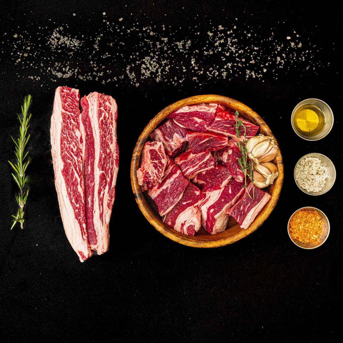 (אנטריקוט, טומהוק, סינטה, פילה בקר, אסאדו, בריסקט, חלקי פנים, מוצרי אווז ועוד)